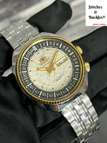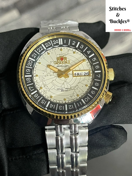 Orient ‘World Map’ Cream Dial RA AA0E01S โ Stitches and Buckles
